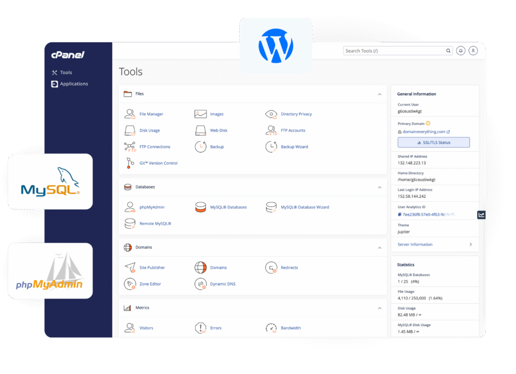 Includes industry-standard cPanel to install apps, manage backups and security.